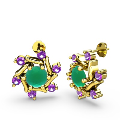 Ametist ve kök zümrüt 14 ayar altın küpe