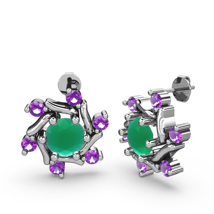 Ametist ve kök zümrüt 18 ayar beyaz altın küpe