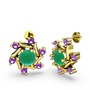 Ametist ve kök zümrüt 8 ayar altın küpe