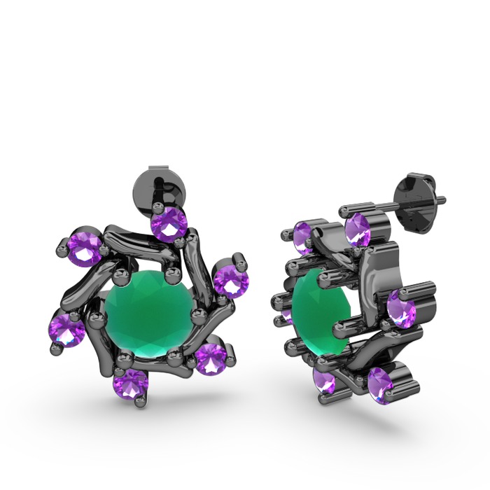 Ametist ve kök zümrüt 925 ayar siyah rodyum kaplama gümüş küpe