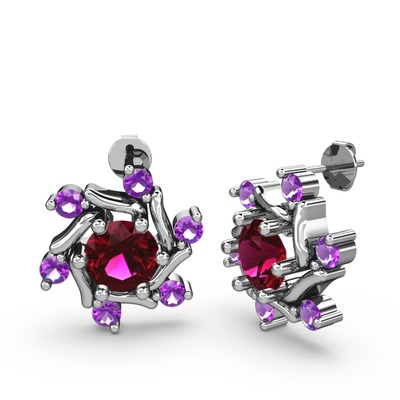 Ametist ve rodolit garnet 18 ayar beyaz altın küpe