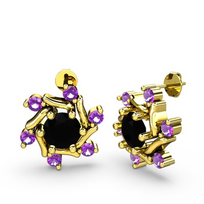 Ametist ve siyah zirkon 14 ayar altın küpe
