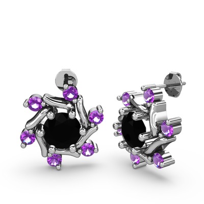 Ametist ve siyah zirkon 18 ayar beyaz altın küpe