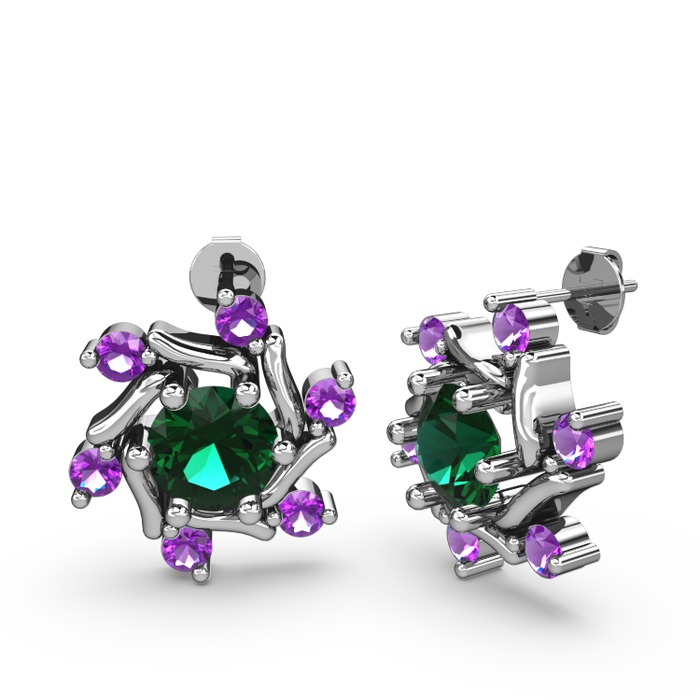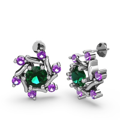 Ametist ve yeşil kuvars 18 ayar beyaz altın küpe