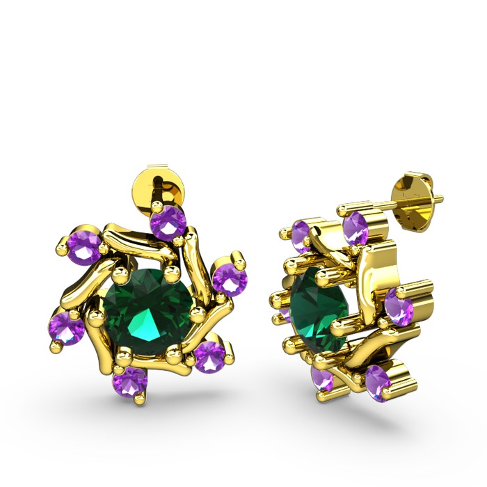 Ametist ve yeşil kuvars 925 ayar altın kaplama gümüş küpe