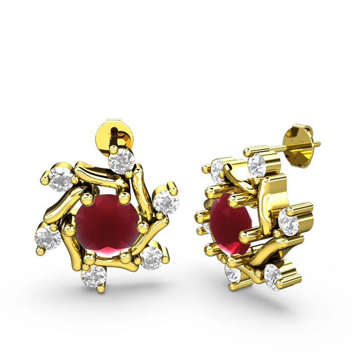 Beyaz zirkon ve kök yakut 14 ayar altın küpe