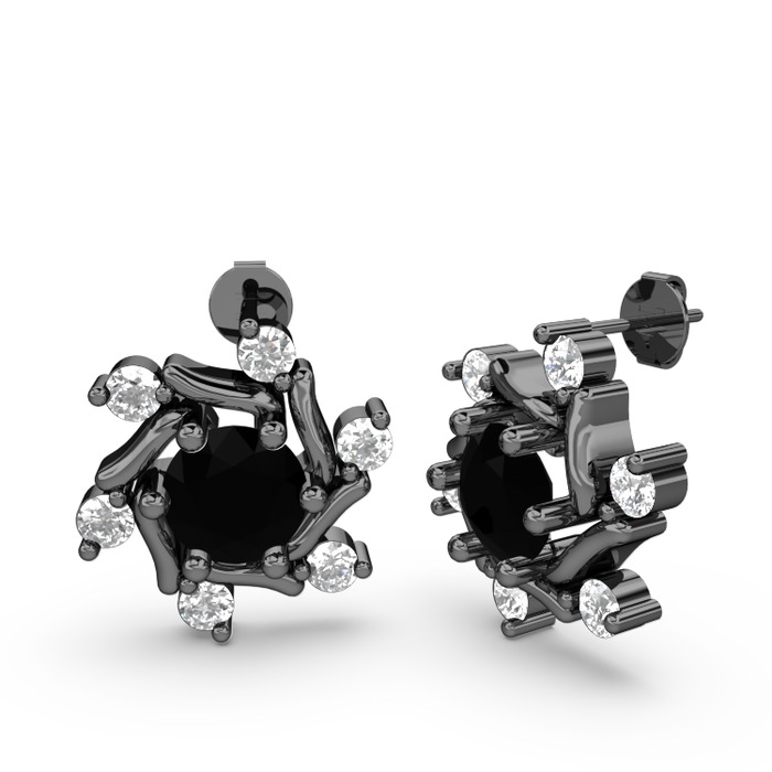 Beyaz zirkon ve siyah zirkon 925 ayar siyah rodyum kaplama gümüş küpe