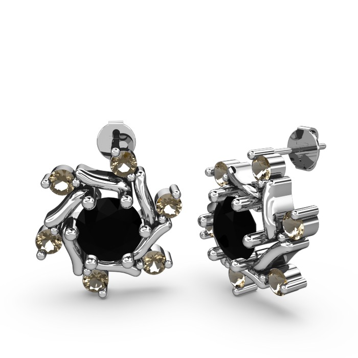 Dumanlı kuvars ve siyah zirkon 925 ayar gümüş küpe