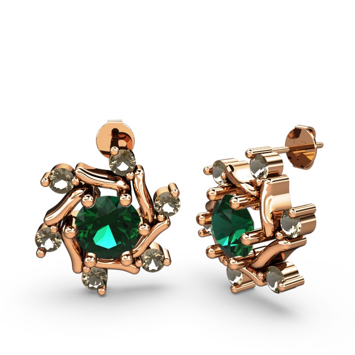 Dumanlı kuvars ve yeşil kuvars 18 ayar rose altın küpe