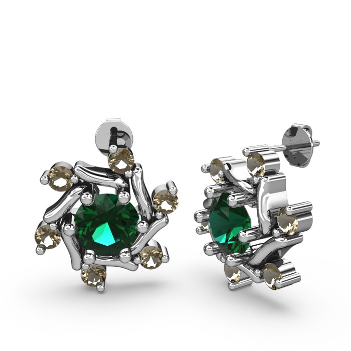 Dumanlı kuvars ve yeşil kuvars 8 ayar beyaz altın küpe