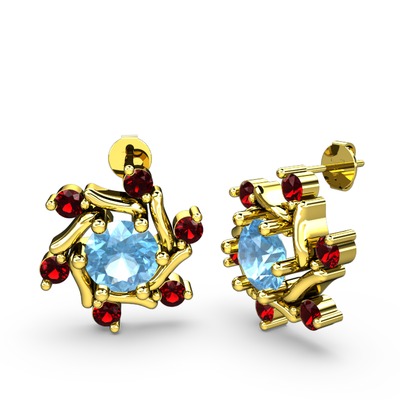 Garnet ve akuamarin 14 ayar altın küpe