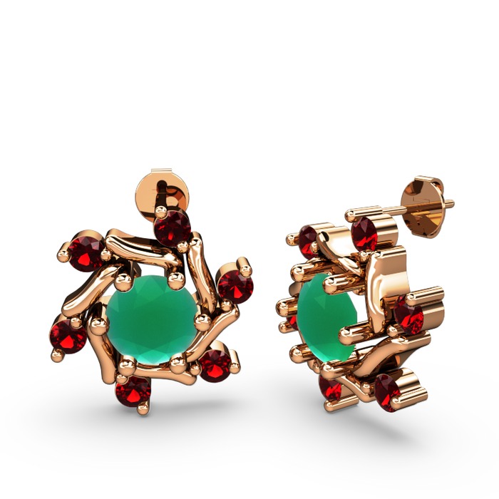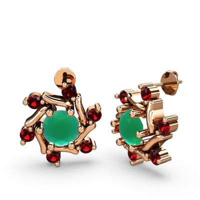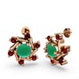 Garnet ve kök zümrüt 8 ayar rose altın küpe