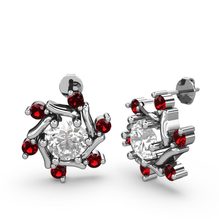 Garnet ve pırlanta 18 ayar beyaz altın küpe (1 karat)