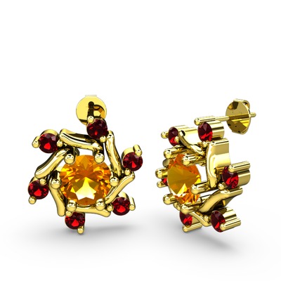 Garnet ve sitrin 925 ayar altın kaplama gümüş küpe
