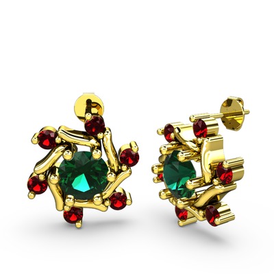 Garnet ve yeşil kuvars 14 ayar altın küpe