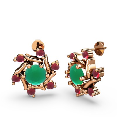 Kök yakut ve kök zümrüt 18 ayar rose altın küpe