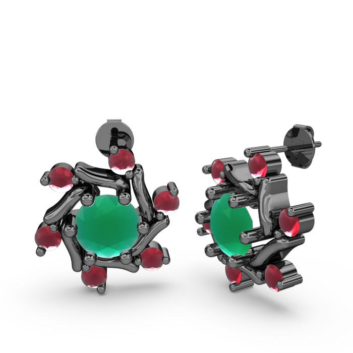 Kök yakut ve kök zümrüt 925 ayar siyah rodyum kaplama gümüş küpe