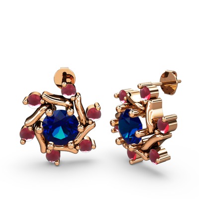 Kök yakut ve lab safir 14 ayar rose altın küpe
