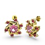 Kök yakut ve pembe kuvars 14 ayar altın küpe