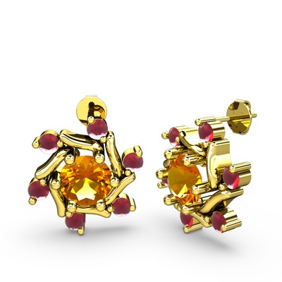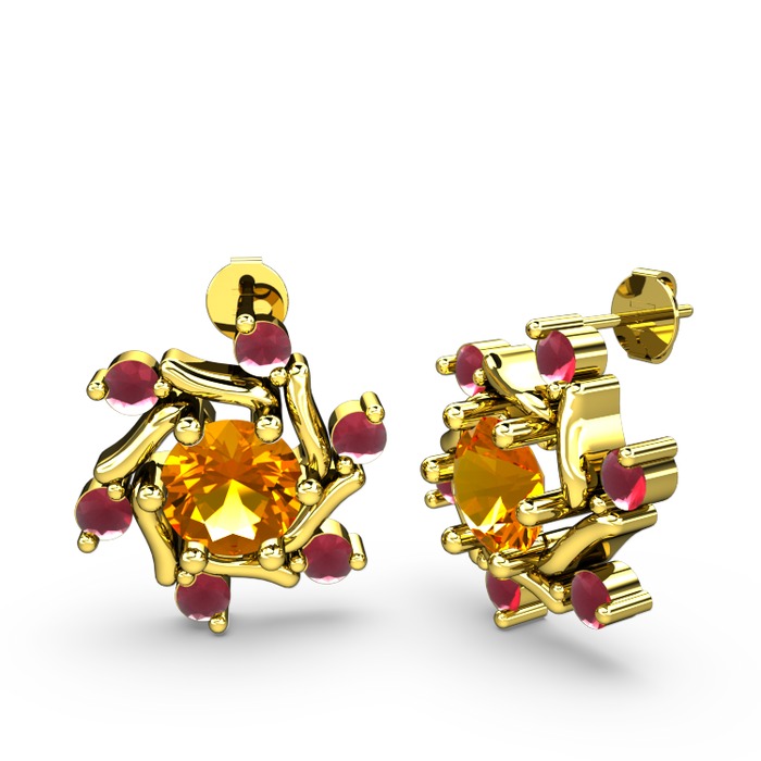 Kök yakut ve sitrin 8 ayar altın küpe