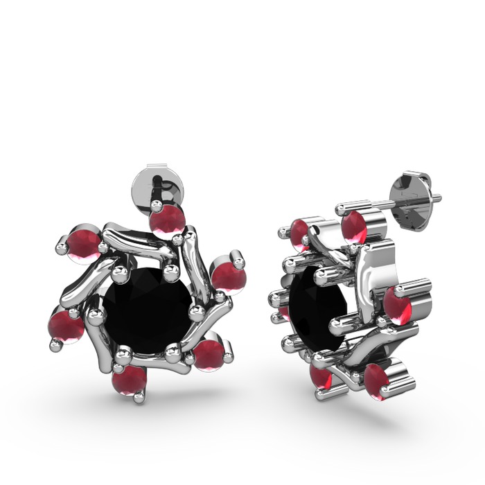 Kök yakut ve siyah zirkon 14 ayar beyaz altın küpe