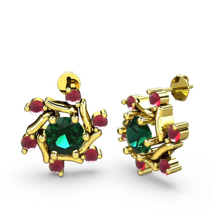 Kök yakut ve yeşil kuvars 925 ayar altın kaplama gümüş küpe