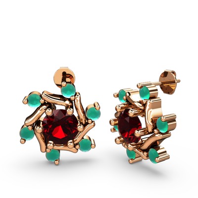 Kök zümrüt ve garnet 925 ayar rose altın kaplama gümüş küpe