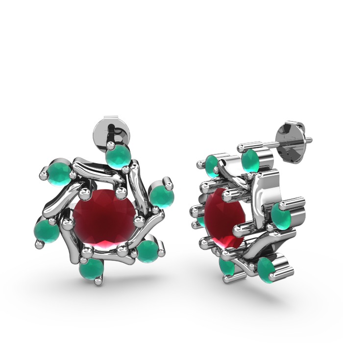 Kök zümrüt ve kök yakut 925 ayar gümüş küpe