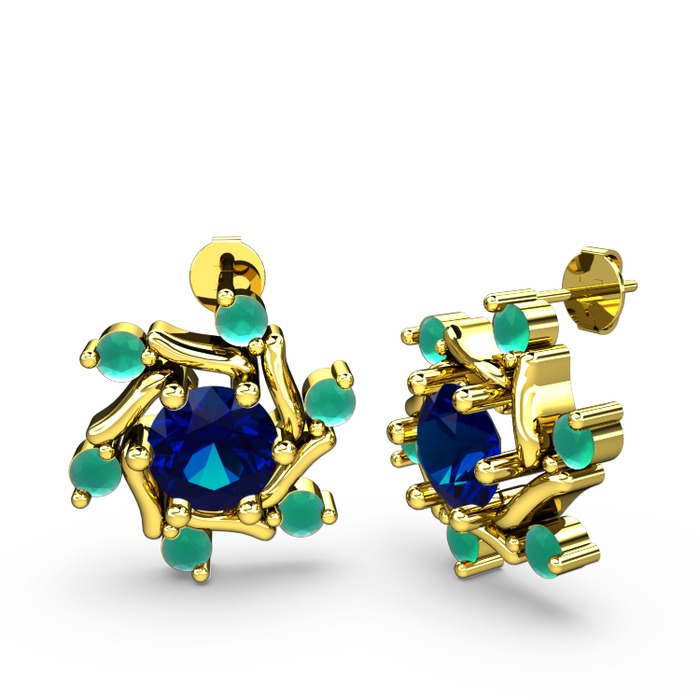 Kök zümrüt ve lab safir 8 ayar altın küpe