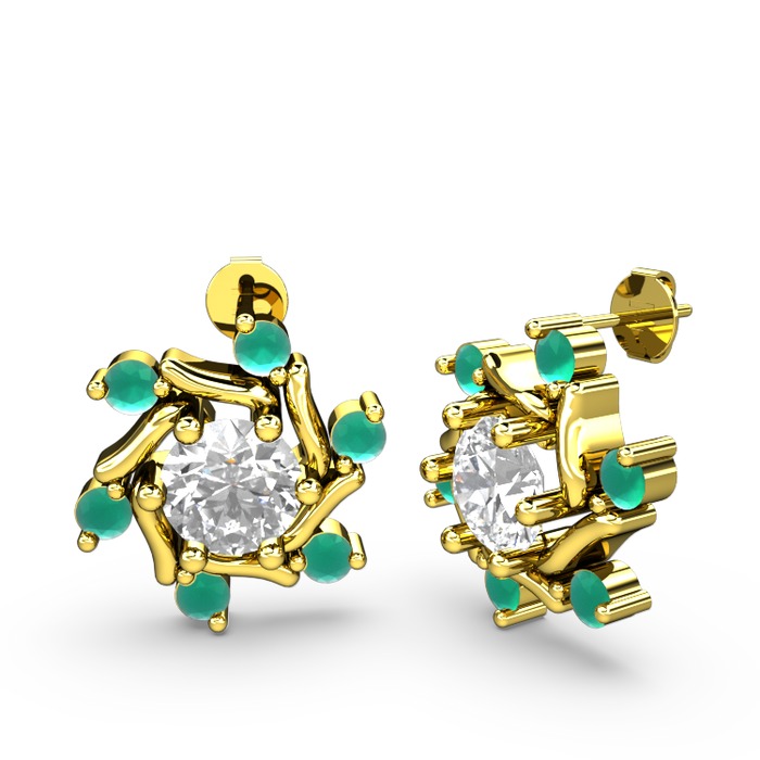 Kök zümrüt ve swarovski 14 ayar altın küpe