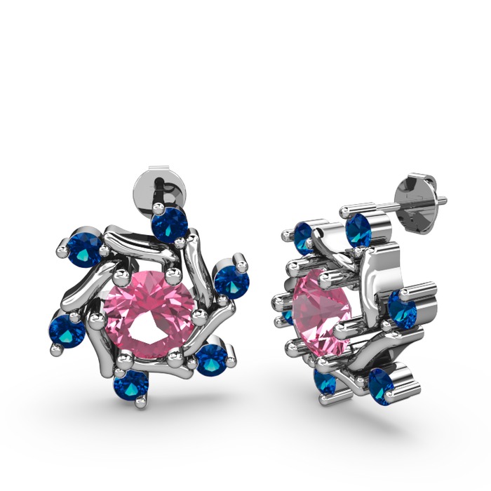 Lab safir ve pembe kuvars 18 ayar beyaz altın küpe