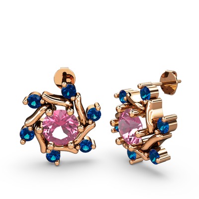 Lab safir ve pembe kuvars 925 ayar rose altın kaplama gümüş küpe