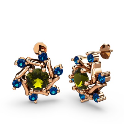 Lab safir ve peridot 925 ayar rose altın kaplama gümüş küpe