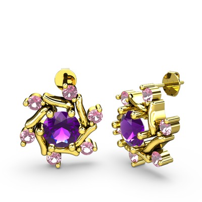 Pembe kuvars ve ametist 14 ayar altın küpe