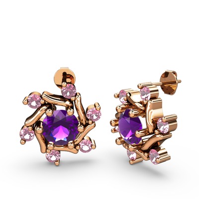 Pembe kuvars ve ametist 925 ayar rose altın kaplama gümüş küpe