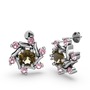 Pembe kuvars ve dumanlı kuvars 8 ayar beyaz altın küpe