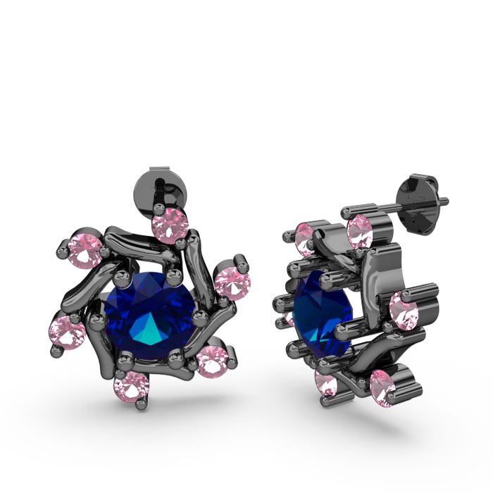 Pembe kuvars ve lab safir 925 ayar siyah rodyum kaplama gümüş küpe