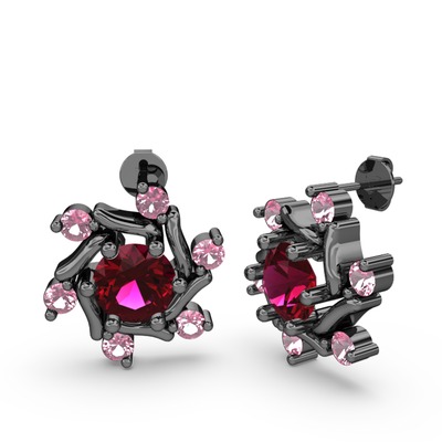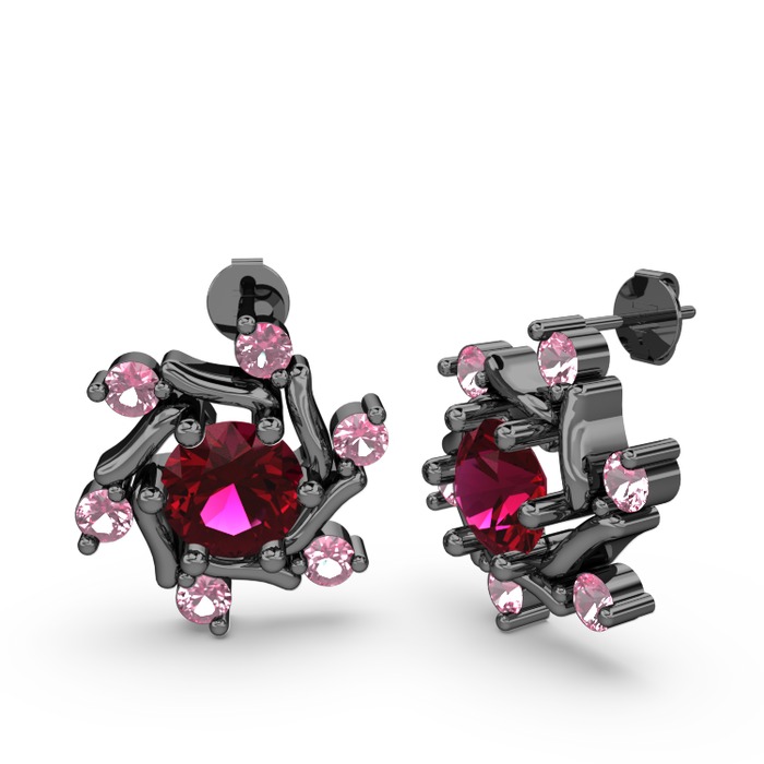 Pembe kuvars ve rodolit garnet 925 ayar siyah rodyum kaplama gümüş küpe