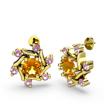 Pembe kuvars ve sitrin 14 ayar altın küpe