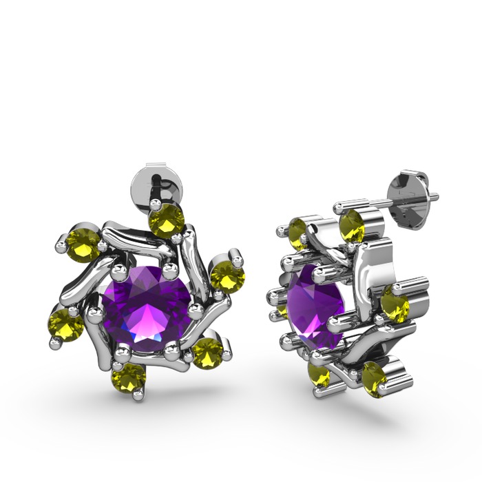 Peridot ve ametist 925 ayar gümüş küpe