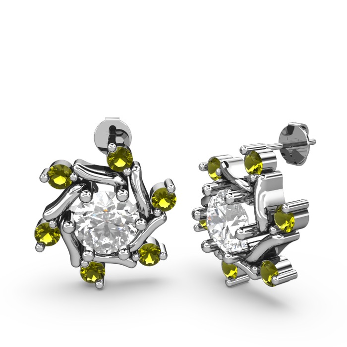 Peridot ve beyaz zirkon 14 ayar beyaz altın küpe