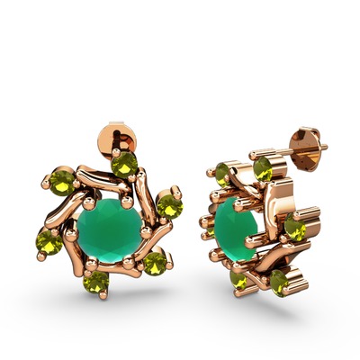Peridot ve kök zümrüt 18 ayar rose altın küpe