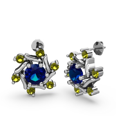 Peridot ve lab safir 18 ayar beyaz altın küpe