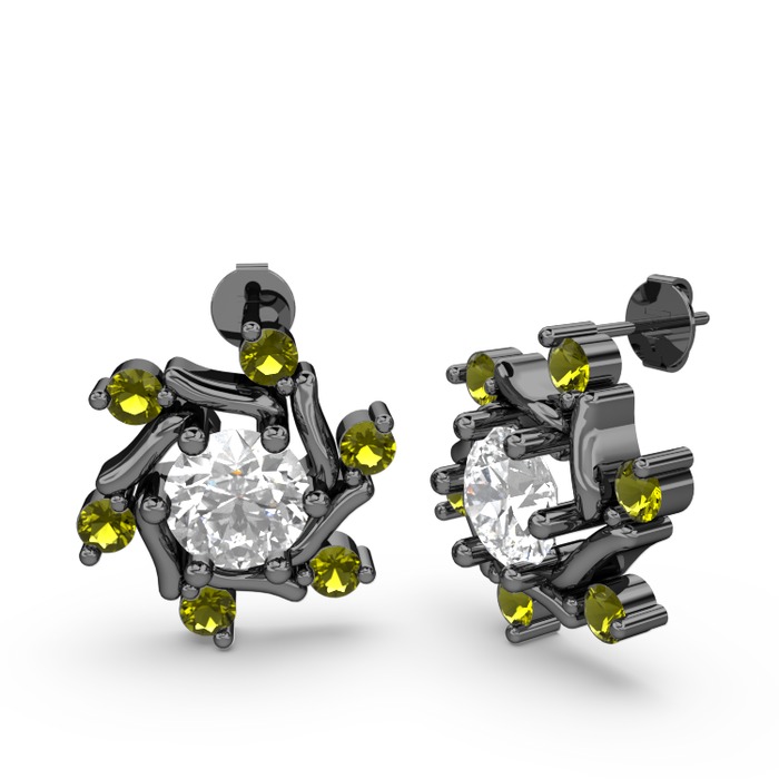 Peridot ve pırlanta 925 ayar siyah rodyum kaplama gümüş küpe (1 karat)