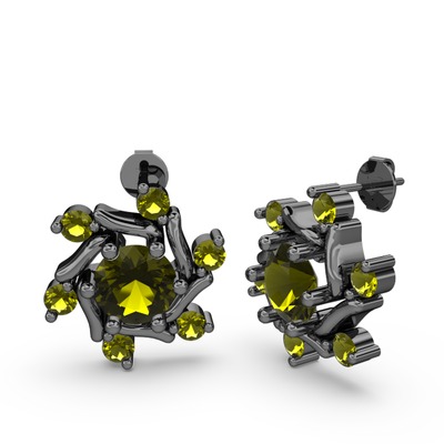 Peridot 925 ayar siyah rodyum kaplama gümüş küpe