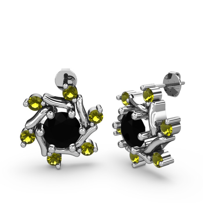 Peridot ve siyah zirkon 925 ayar gümüş küpe