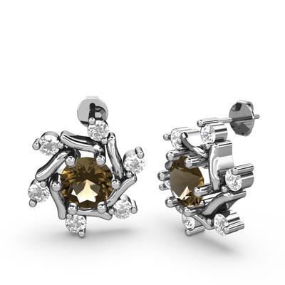 Pırlanta ve dumanlı kuvars 18 ayar beyaz altın küpe (0.432 karat)