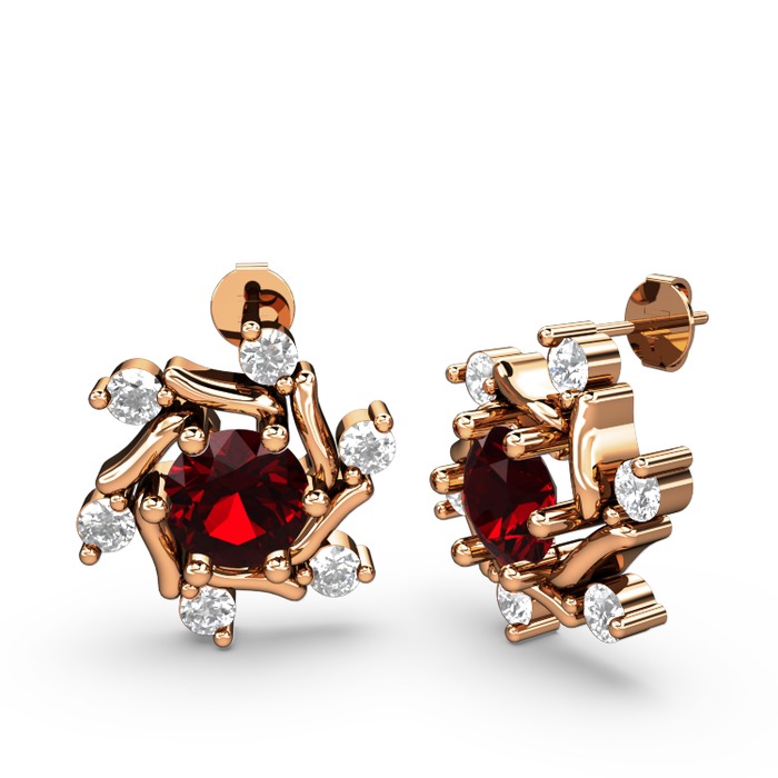 Pırlanta ve garnet 14 ayar rose altın küpe (0.432 karat)