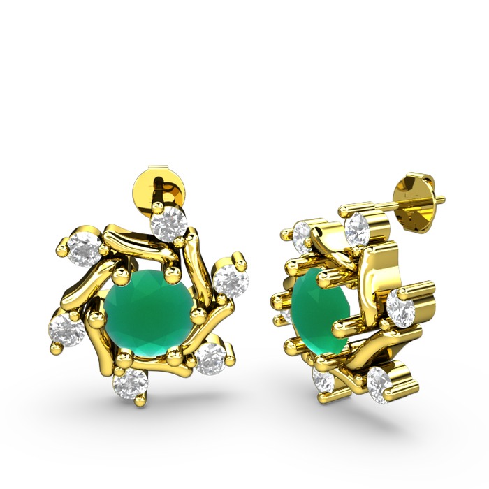 Pırlanta ve kök zümrüt 925 ayar altın kaplama gümüş küpe (0.432 karat)