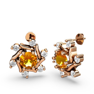 Pırlanta ve sitrin 18 ayar rose altın küpe (0.432 karat)